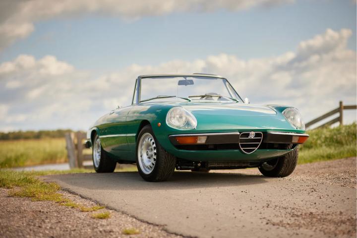 The Alfa Romeo Spider was introduced on 10 March 1966 at the Geneva Motor Show. It was the successor to the Giulietta Spider and was the first of a total of four series that would eventually be built. The Spider is considered one of the most beautiful convertibles, thanks to its beautiful and distinctive design by Pinifarina. The Series II was built from 1970 to 1983 and was available with four engines: a 1300, 1600, 1750 and 2000. Models with the 1750 and 2000 engines were named Veloce (Italian for “fast”). The 2000 is obviously the most powerful and therefore the most popular. The Spider enjoyed great popularity in America, particularly thanks to the film “The Graduate”, in which actor Dustin Hoffman drove a 1600 Spider Duetto. The Spider remains as popular as ever, especially a classic 1750 Duetto model.