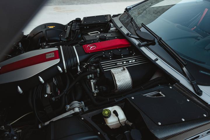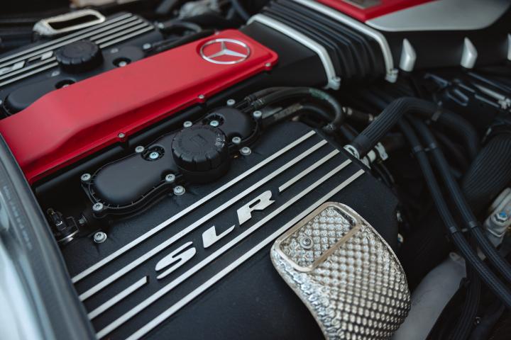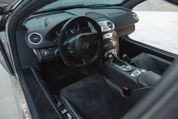 Performance upgrades over the standard SLR Roadster include a lowered suspension, larger carbon-ceramic brakes, stiffer damping, a carbon-fiber front splitter, and unique 19-inch wheels. Top speed is rated at 208 mph, with 0–60 mph in just 3.7 seconds.