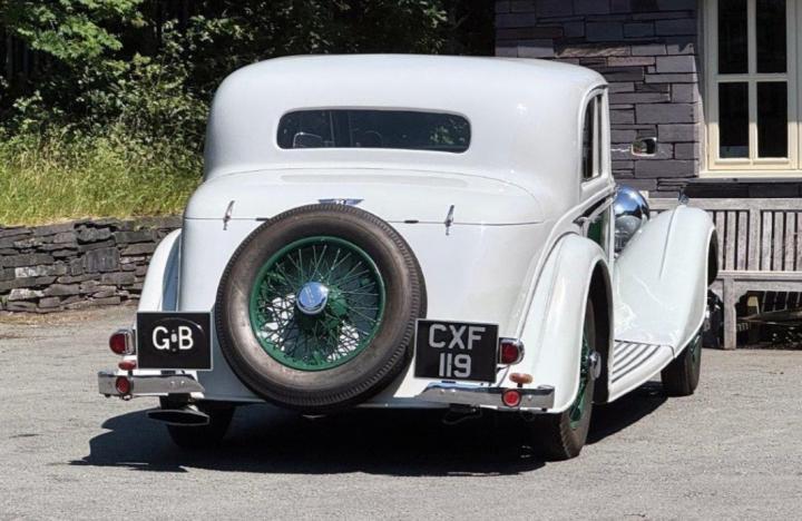 A very attractive Derby Bentley, well-proportioned and with some appealing touches, such as ‘trouser crease’ wings, chrome waistline mouldings, Marchal headlights (as per original spec), long trumpet Lucas horns, and – very unusually – a chrome plated dashboard. Finished in light grey and green, harmonising nicely with the original green leather interior. An essentially good car, running well and driving nicely. The history file includes, amongst many other documents, evidence of an engine overhaul in 2016, (which included new main and big end bearings), a number of old MoT certificates, a tax disc from 1970, various invoices, an ownership record, etc, etc. Originally used as a ‘trials car’ or demonstrator, by Jack Barclays, and registered JB1000, featuring many times in the official quarterly Bentley journal of the 1930s, ‘On the Road’. Some of the pages from this are reproduced on our website - and there are many more!