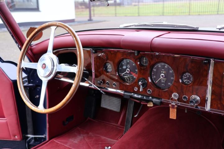 After body and chassis were reassembled the entire car was rebuilt by us with every conceivable upgrade installed. Electric power steering, aluminum radiator, alternator, stainless steel exhaust, 123 ignition, bucket seats, burr walnut dashboard, Evans coolant etc. the entire interior was custom built at a leading dutch upholsterer using the finest materials. The entire process is substantiated with a file of photos and bills. In November 2022 the Jaguar was sold by us to the second owner who has not used it often.