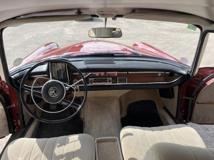 The Mercedes 220b has Spanish registration documents. The roadworthiness inspection was valid until 08/2025. Sold on a commercial invoice by Dandy Classics, ready for registration in most European countries.