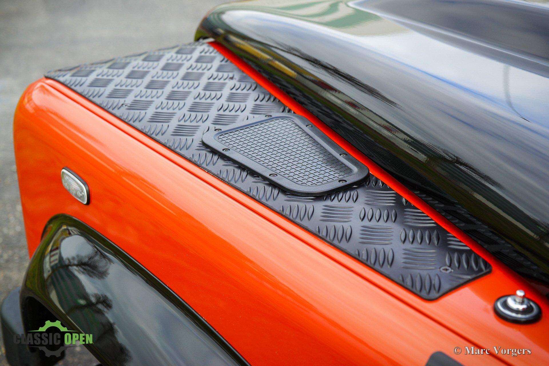 Kleur Phoenix Orange met een ‘Windsor’ zwartlederen interieur afgewerkt met zwart tapijt.
