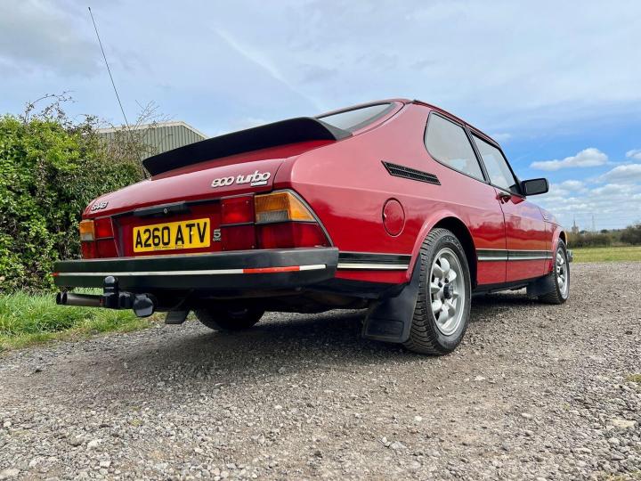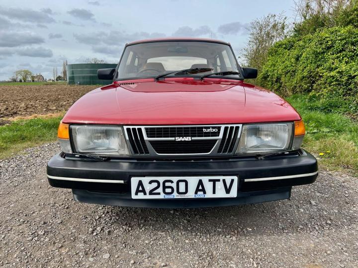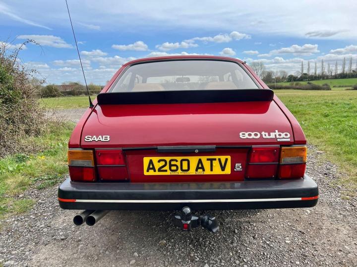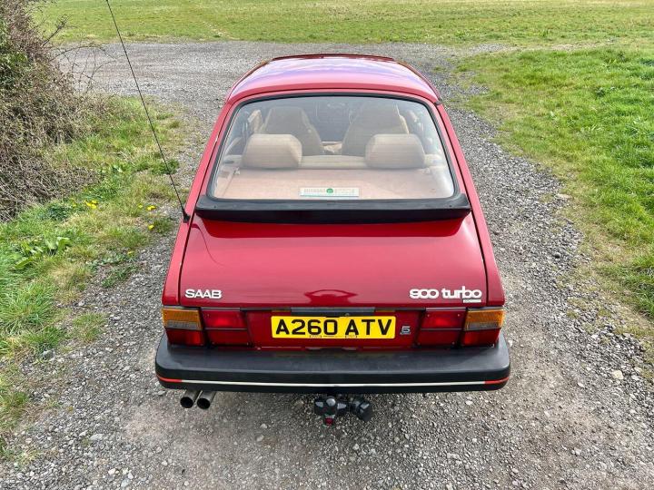 The exterior is in overall excellent condition for the age, with straight panels and no heavy damage. There some stone chips, a few very small blisters here and there, and signs of minor paint repairs over the years but all to a good standard and overall the attractive Cherry Red paint presents well with a deep shine. All the bumpers and trims again appear to be original and in great order. The original Saab minilight style alloy wheels are tidy and shod with nearly new Goodyear all weather tyres. There is a tow bar which would suit a small trailer or bike rack , or I can have this removed if you prefer. I quite like it to be honest and I think it look appropriate! The car was still sporting it's original dealer tax disc holder, window sticker and number plates. The number plates were getting to be in poor condition, so I have commissioned and fitted a beautiful pair of exact replica dealer plates from Retro Plates, they look fabulous and I have retained the old ones for provenance.