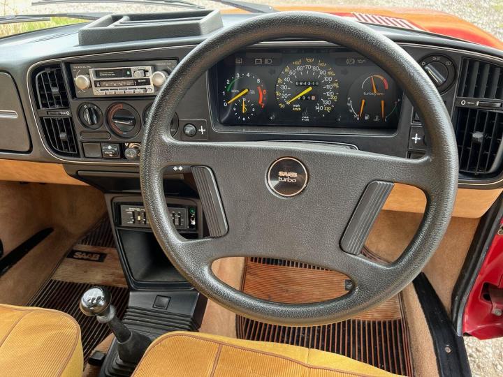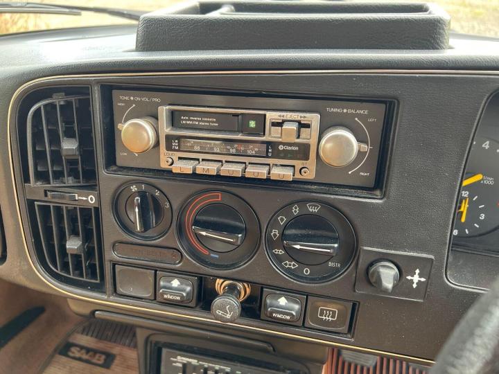The interior is an absolute joy. The dash is in great condition and still sports an appropriate age related radio, and a cool graphic equaliser in working order! The velour seats are in excellent condition with no rips or tears. They even still have a stunning set of dealer fitted embroidered and padded seat cover which would be very hard to find today. The interior protection is also complimented by the original Saab rubber mats, and hard armadillo type load liner in the boot. The tool kit is still present under the boot floor, as is the parcel shelf, fire extinguisher and warning triangle. The sunroof slides open as it should. The electric windows and mirrors all work nicely. The headlining has dropped slightly at the rear as they often do. It has been pinned up ok and doesn't intrude but could be an area for the next owner to improve should they wish.