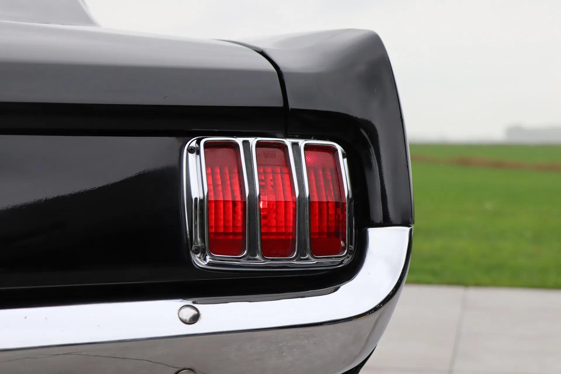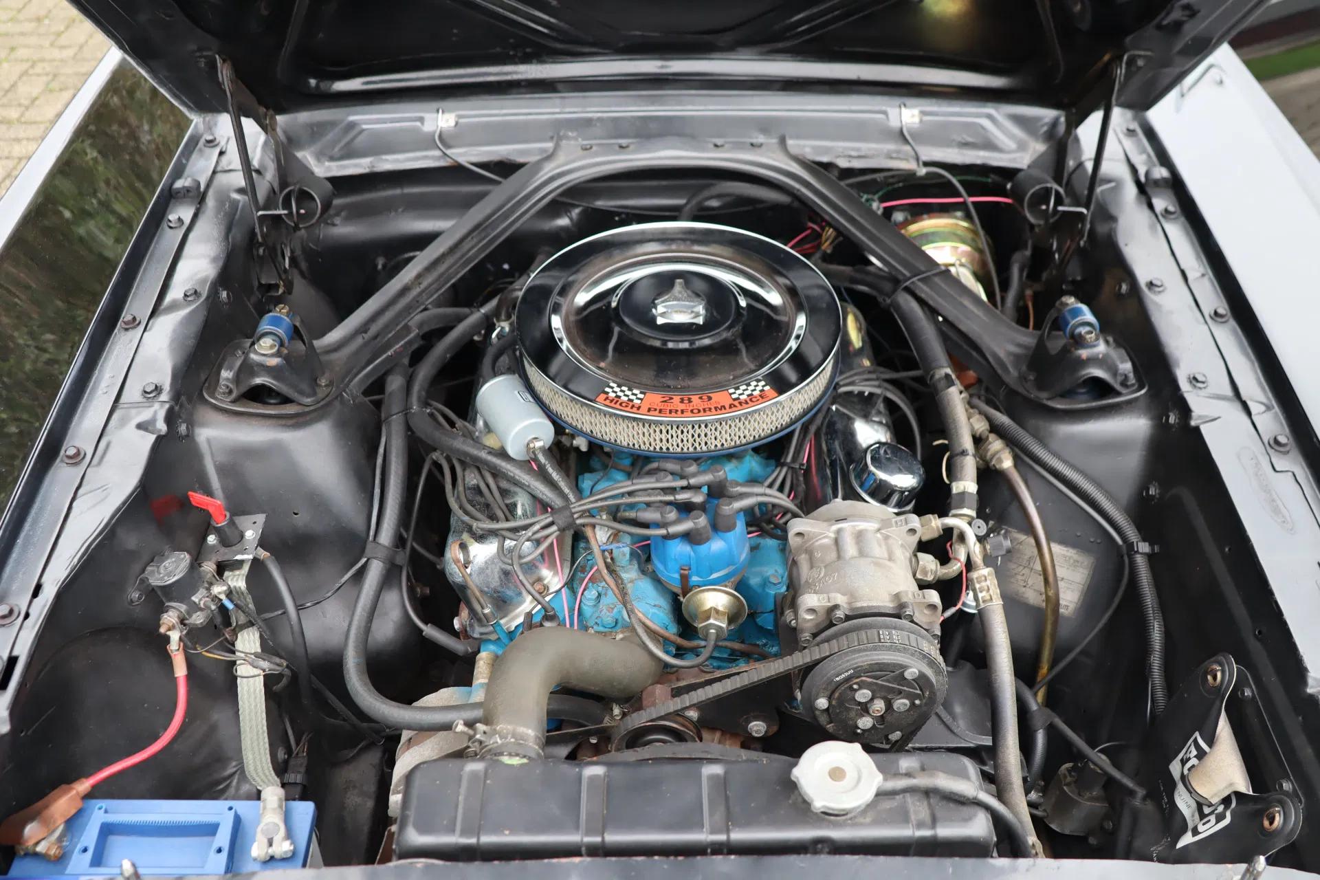 The black Pony interior is still in good condition. The upholstery is finished in black leatherette. The driver looks out over the distinctive wood/aluminium steering wheel and deep dials. A “rally pack gauge cluster set” with a tachometer and clock has also been installed. The original Ford radio is still present. The dashboard and instruments are in good condition. The panel and headliner upholstery and floor covering are also in good condition. The air conditioning has been refilled. The interior is an ideal combination of comfort, originality and classic looks. What's more, the Mustang is a 2+2, allowing four people to enjoy the Mustang driving experience.