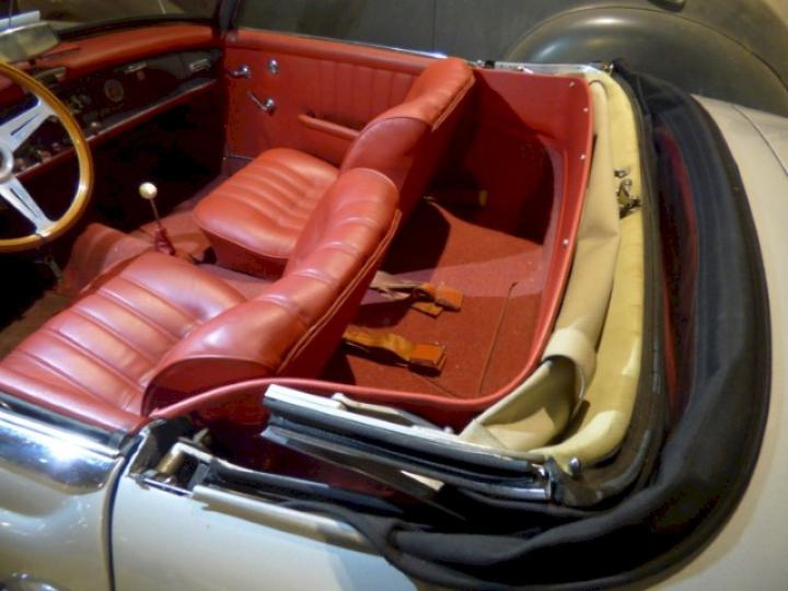 Betreft een redelijk exemplaar deze late versie 190SL, een auto met een leuk uiterlijk, het lakwerk van origine donkergrijs 190G is in het verleden gewijzigd in de kleur zilver metallic 180G en is in een redelijk conditie zo ook het chroomwerk is netjes en past goed, de voorruit omranding mag vroeg of laat verchroomd worden, het rood leder interieur met passend tapijt is in een goede staat, softtop is in een goede conditie, qua body optisch goed echter o.a de vloerbodem-delen hebben aandacht nodig, nieuwe bodem delen zijn reeds aanwezig en gaan mee met de koop, technisch en motorisch loopt en rijdt deze 190SL cabriolet naar behoren, de kwetsbare Solex carburateurs zijn in het verleden vervangen in Mikuni met behoud van luchtfilter en aanzuigbuis, het motor onder blok is in het verleden vervangen door de juiste ruil motor af fabriek, het bovengedeelte met name de cilinderkop is nog origineel.