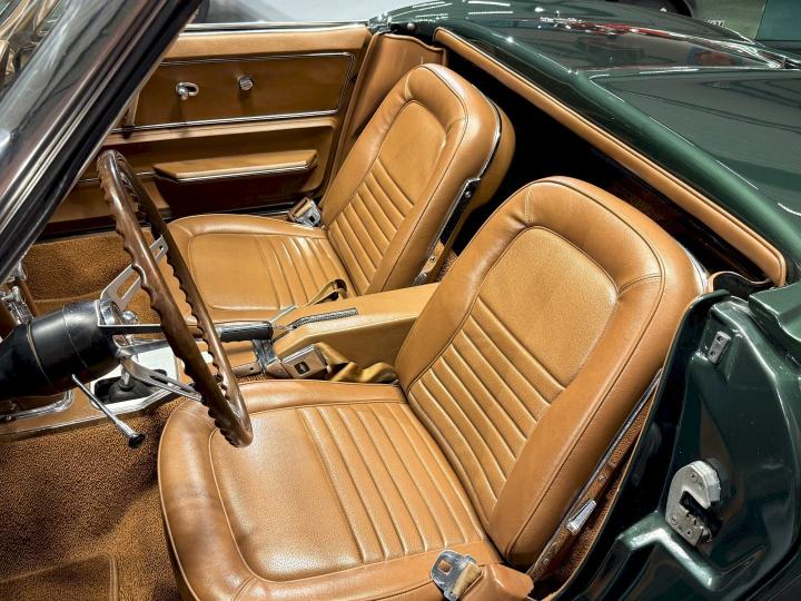 Goodwood Green, the color this car proudly wears today, was the leading color of 1967—a deep, elegant shade that perfectly matched America’s growing taste for sophisticated sports cars. Paired with a Saddle interior, it reflects a time when luxury and performance began to merge into one unmistakably American formula.