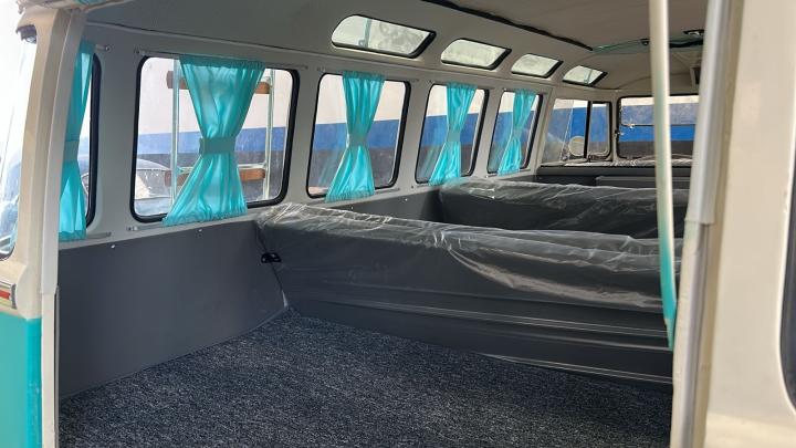 Additional Info : Just restored VW T1 splitwindow bus Samba replica with 1600cc aircooled engine