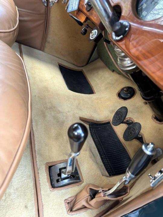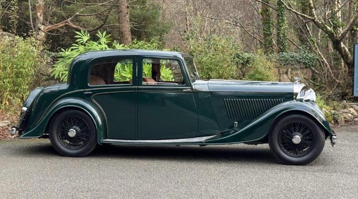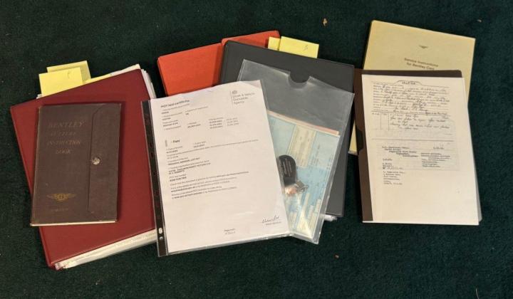 A particularly handsome car, very attractively finished in dark green with tan leather interior, and in lovely, smart and sharp condition. The paintwork is to a high standard, the leather is excellent, as is the headlining, and the interior wood veneers are particularly lovely, with a superb finish. Features include P100 ‘bullseye’ headlights (unusual for a Derby Bentley) and handsome ‘trouser crease’ wings. The car comes with a significant maintenance and repair history file, two large folders worth, going back to the 1980s, showing a great deal of expenditure, together with various literature, and an original handbook in lovely condition. There is also a selection of spare parts included. It is apparent just from looking at the car that it has been well cared-for. Running and driving very nicely, and fitted with overdrive, which really improves long-distance cruising, making the experience much more relaxing. Also fitted with three-point inertia reel seat belts, which is unusual for a coachbuilt car. MoT tested until January 2027, serviced, and ready to go!