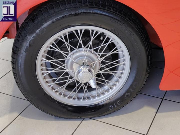The red exterior combined with the beige interior enhances the classic lines of this British roadster, highlighting its elegant yet sporty character.