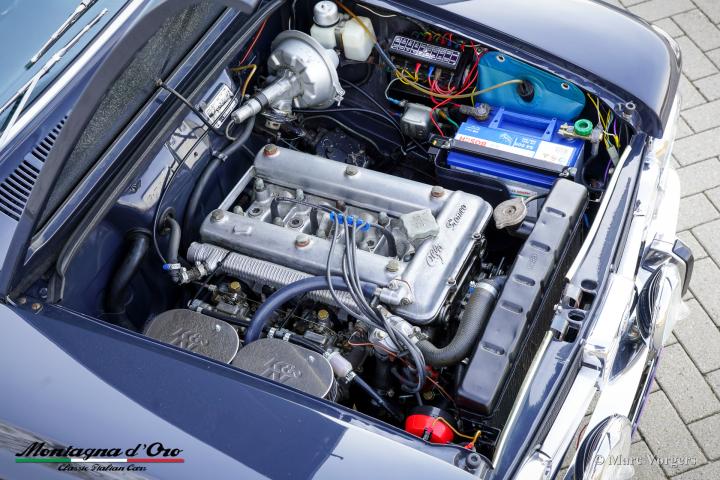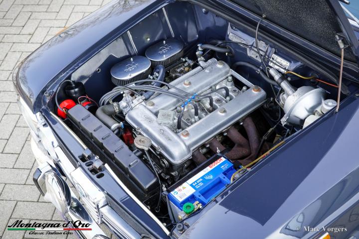 Deze prachtige Alfa Romeo Giulia verkeert in een schitterende en zeer goede originele staat. De carrosserie is in het verleden prachtig overgespoten in de originele kleur. Het interieur is volledig origineel en in zeer goede staat met slechts lichte gebruikssporen.