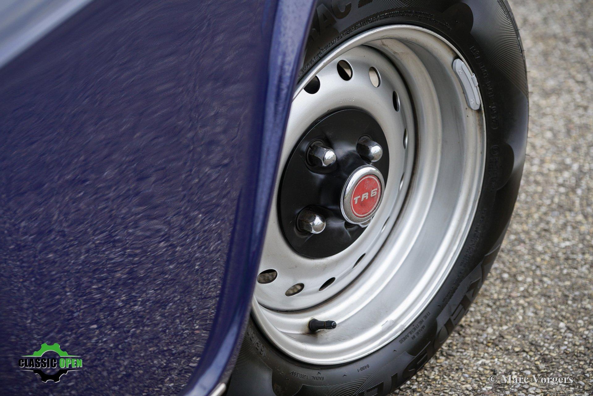 De auto heeft aantrekkelijke originele details behouden, zoals de originele stalen velgen met zwarte wieldoppen en de interieurverlichting tussen de stoelen.