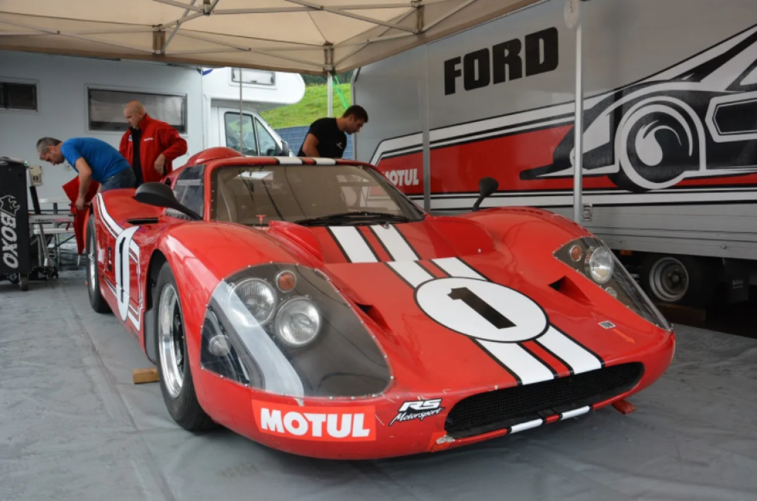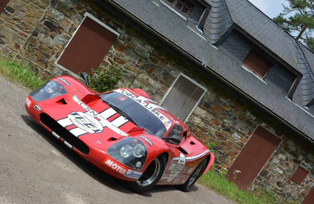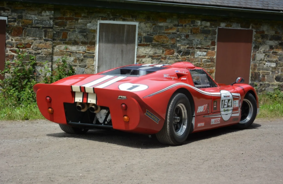 Heron MK4 GT Sports Racing Car Designed by Ross Baker, built by Ross Baker, Bob Gee and Chris Cooke in 1967 The Heron GT MK4 was a replica of the Ford GT40 MK4 Sports Racing car. Following the success of the Ford GT40 at Le Mans in 1967 Bob Gee and Ross Baker decided to team up and build this beautiful replica of the car to race the following season. They spent many hours reading and researching all they could to collect the information and specification to build the car they wanted. They decided to use a 327 ci Chevrolet Corvette motor, but the gearbox was a problem! They decided to design and build there own unit, it all started with a Ford Zephyr MK4 gears, a Ford V8 crown wheel and pinion with Ford Zephyr output shafts, Howard rotary hoe quick change gears and a Mini oil pump to pressure feed the oil to the gears. Bob made the patterns from the drawings of Ross to cast the aluminum housings, one cast. Dave Long Engineering did the machining and then they had the gearbox. They proceeded to draw plans for the steel monocoque chassis with fiberglass body panels. All the suspension was to be fabricated from steel with coils. Once the plans were finished, they started on the body plug. All the steel panels were cut from the drawings and ten either spot welded or pop riveted together. Bob made the male plug and glassed over this before sanding and filling it to finish. The car was two thirds finished, when the controlling body of the sports car racing decided to change the maximum capacity of engines to only 2000cc, which made the car obsolete before it had even raced! The car was put on hold and restarted, being completed in 1988 when it raced at the Whenuapai wings and Wheels meeting where it competed very well. However, straight line and powering through corners were out performing the Ferraris, but the 1967 brakes were not up to the cars performance. The car was sold to David Manton in 1990, who had a car collection in New Zealand and disappeared for a while. In 2008 Maurice O’Reilly called to say the car was for sale in Belgium after a short stay in the United States. It has been mentioned that the car was seized by European customs for three years, but no evidence of this. The car was then purchased by the current owner and supported by Mr. Adrias Stals in Latvia who prepared they car for European racing. The brakes have been upgraded, new coil-overs and the engine horsepower was increased. While the car still used the Heron designed and built transaxle. The car has successfully competed in a number of race meetings competitively finishing well amongst a mixed field, the last race this year at Le Mans in September 2018.