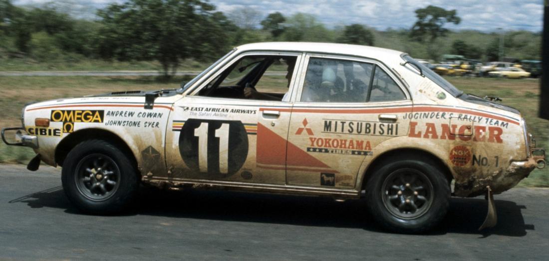 All four registered Mitsubishi’s Lancer 1600 GSR reached the finish in 1976 of the toughest rally in the world championship: the Safari Rally held in Kenya. And not just finished; Joginder Singh and David Doig won this grueling rally, with the same Lancer’s in places two, three and six. A great success for the Japanese manufacturer, which proved that it could achieve great reliability and appealing results with relatively simple cars. The Safari Rally was the most important at the time, but also the toughest rally in the world championship, and many brands such as Porsche, Fiat, Lancia, Mercedes, etc., took part. The fact that the small Lancer 1600 GSR won this rally 3 years in a row is still something to take off your cap, or even more appropriately, your helmet.