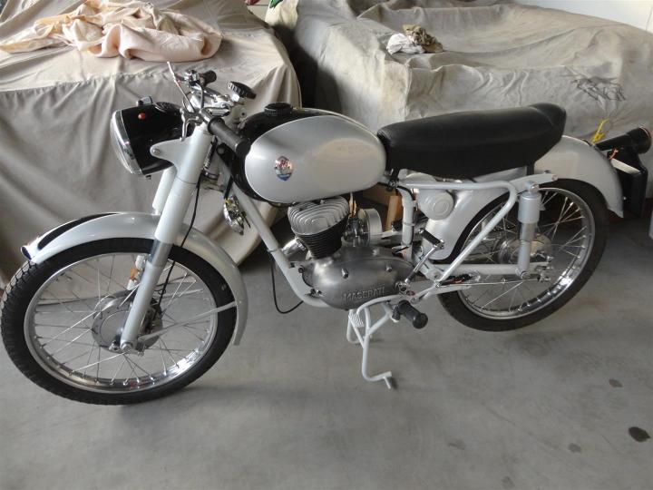 Perfect 100% gerestaureerd. Geheel originele 1958 Maserati 125 CC. Een prachtige, ZEER zeldzame Maserati motor. Slechts een klein aantal geproduceerd. Grote keus in motor- en bromfietsen in de Stolze Collectie!