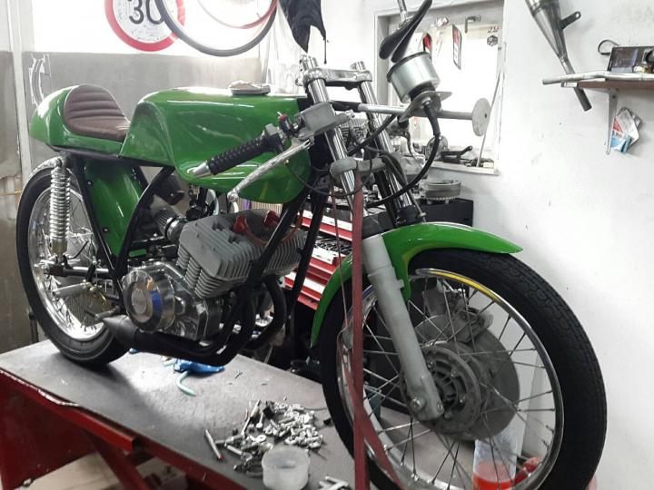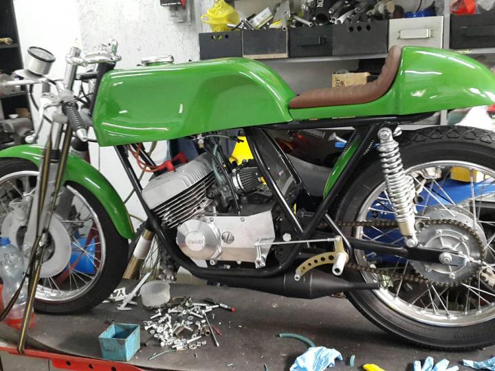 Perfecte 1976 Benelli racer, perfect gerestaureerd: is als fabrieks nieuw en rijdt ook als een nieuwe !Heeft nu Duits kenteken, dus ook geen probleem om om te zetten naar NL kenteken. Grootste keus in ECHTE klassiekers met meer dan 450 stuks in "de Stolze Collectie", van project tot perfect !