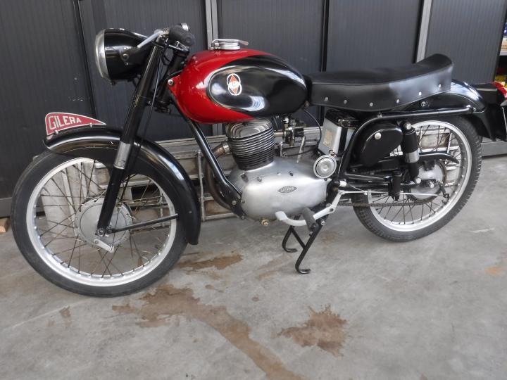 Heel mooie originele 1959 Gilera 150 CC motofiets. Komt uit Italië en loopt rijdt zeer goed. Frame # 197-5013. Grootste keus in ECHTE klassiekers met meer dan 450 stuks in de Stolze Collectie: van project tot perfect !