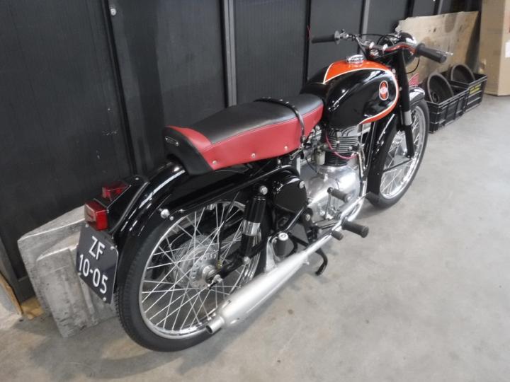 Een zeer mooie, interessante 1956 Gilera G150 Sport. Zeer mooi alsof-ie nieuw zo uit de fabriek komt. Echt uniek 1 cil 150 CC in deze conditie. Frame no is 1977451.Komt met NL kenteken dus rij er mee naar huis. Grootste keus in ECHTE klassiekers met meer dan 450 stuks in de Stolze Collectie: van project tot perfect !